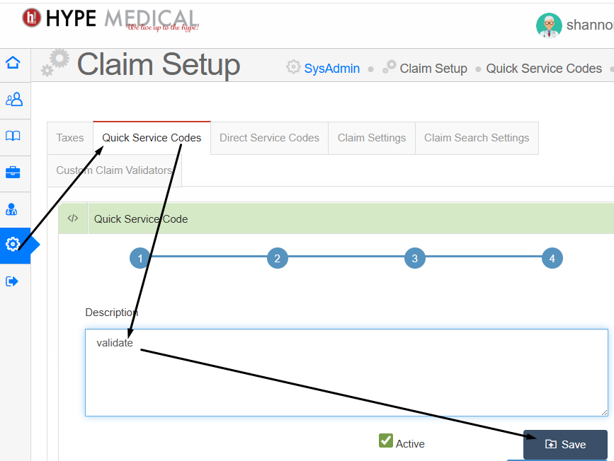 To display eligibility for the time-limited service codes relevant to your practice, those codes must first be set up. In this context, setup means entering the word "validate" in the description field of each applicable service code's Quick Service Code setup.