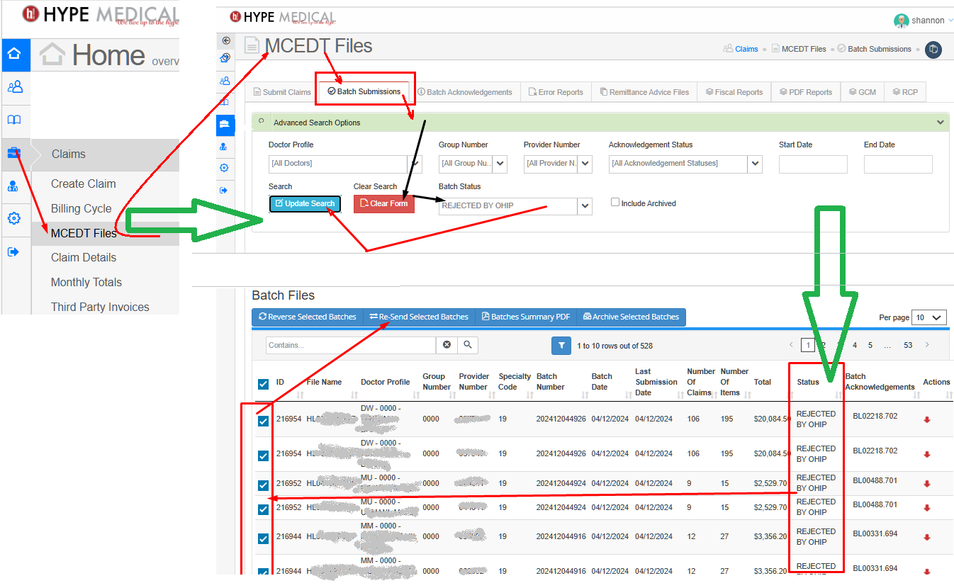 OHIP rejected several of my submission batches. After consulting with the MCEDT office, Hype Systems support staff advised that I re-send all of the rejected batches.