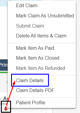In Billing Cycle I chose a sample claim and right-clicked Claim Details from the red arrow's menu. | |