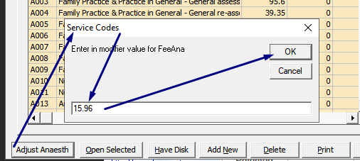 - Enter the updated fee amount For Anesthisiologists, or FeeAna and click OK